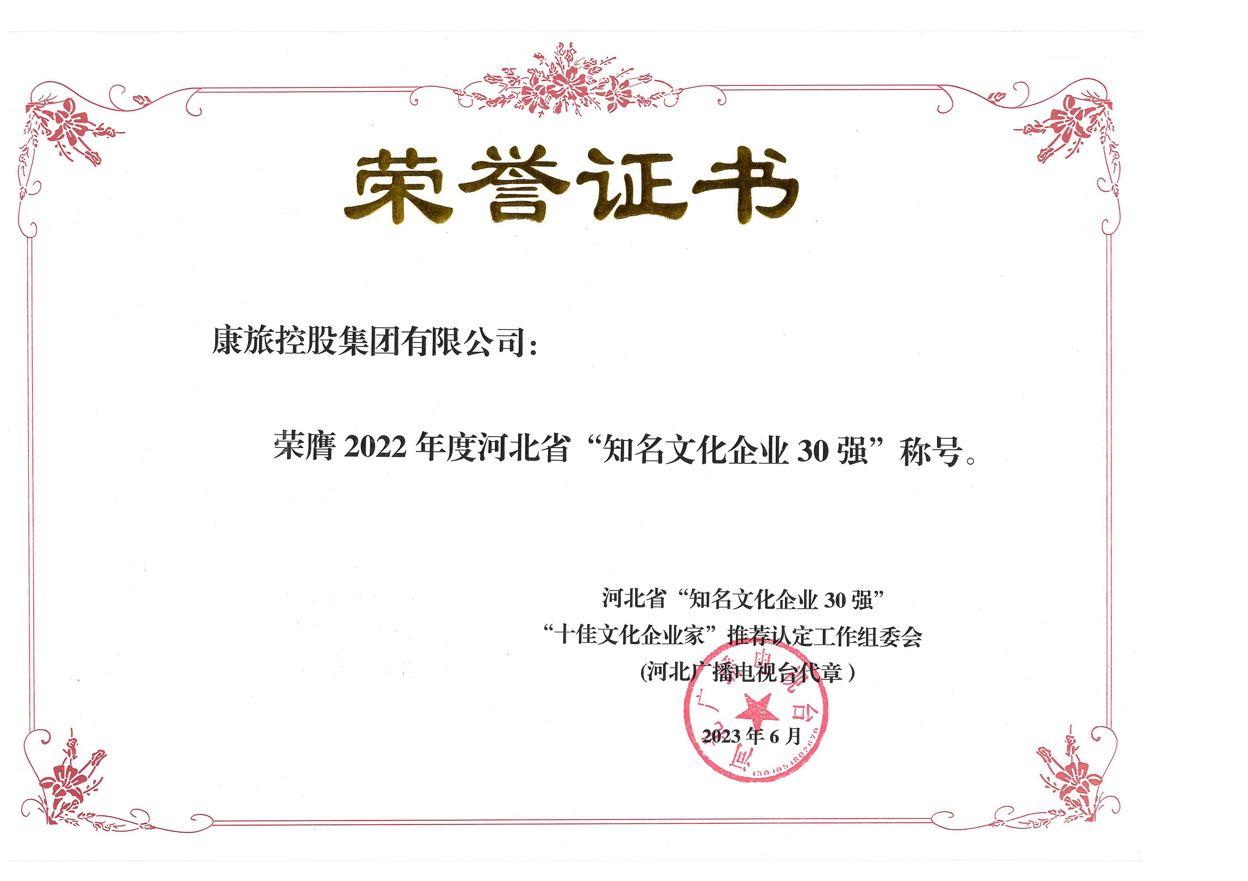 2022年度河北省着名文明企业30强